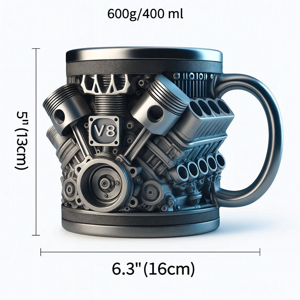 - 🚗 Rev up your mornings – This 400ml (13cm x 16cm) mug is built like a high-performance V8 engine, making every sip feel like a turbo boost.