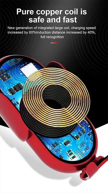 Adopts high charging efficiency upgraded independent coil, Qi wireless fast charging provides up faster charge than most wireless car chargers mounts in the market.
