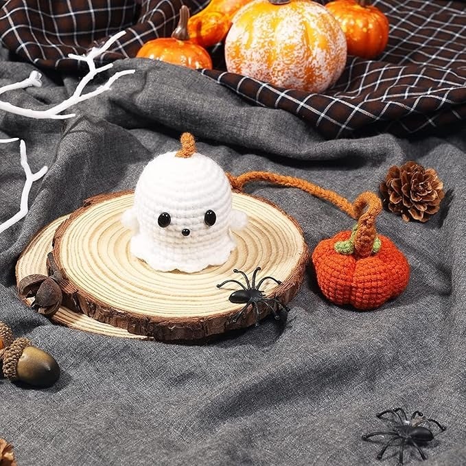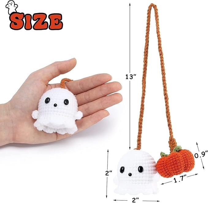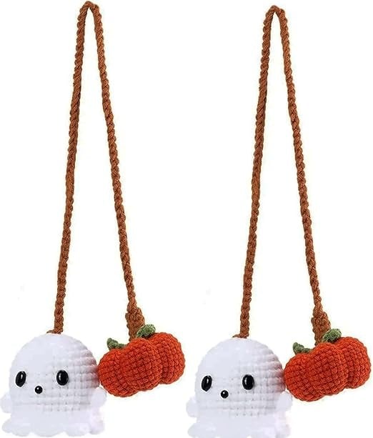 Crafted from soft acrylic yarn and stuffed with premium polyester fiberfill, the pumpkin and ghost are lightweight yet durable — perfectly sized for any car interior.