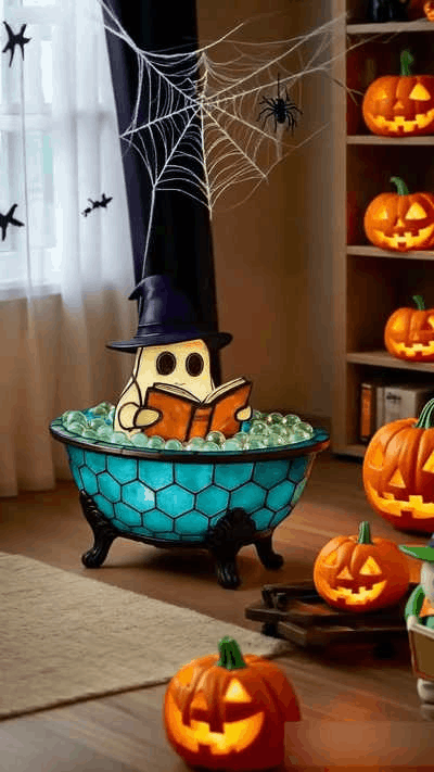 🏡 Compact & Versatile: Fits on countertops, shelves, or near the tub. Great for Halloween or everyday décor!