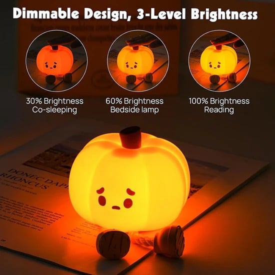 📸 Product Feature Highlight – 3-Level Dimmable Pumpkin Night Lamp